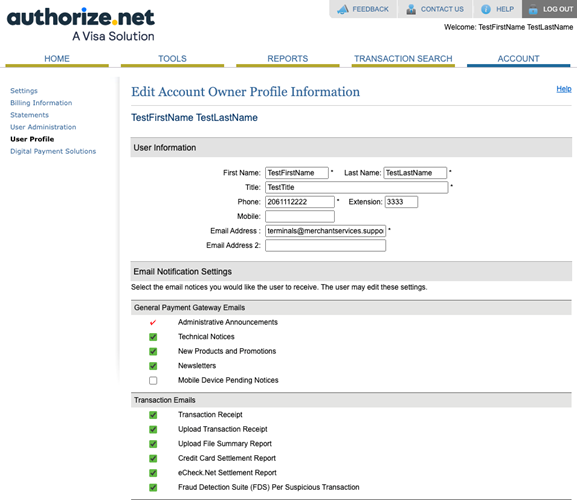 Once you click on Edit Profile Information, you will be able to change the email address for this account, add a secondary email address for this account, or change any notification settings for the account.