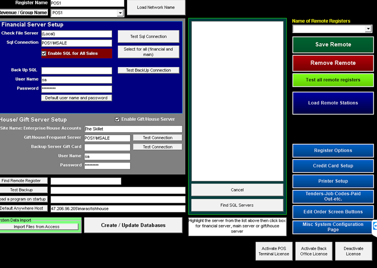 Then select Register Setup > Terminal Configuration
