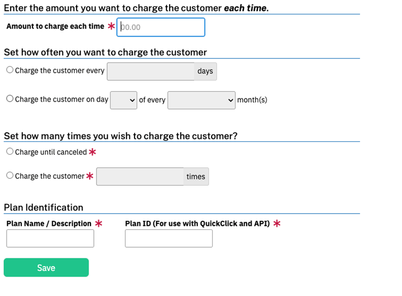 - If you want to charge the customer a specific amount of times, choose the second radio button, and specify how many times you wish to charge the customer.